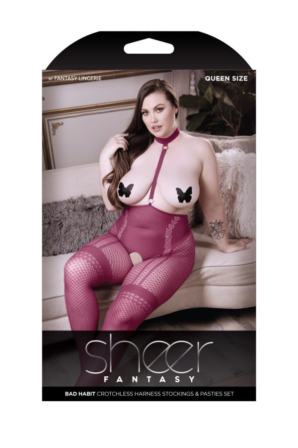 Crotchless Harness Stockings with O-ring Details and 1 Pair Butterfly Pasties