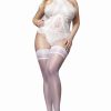 Introducing our stunning plus-size white hold-up stockings from the Wedding Touch Collection, tailored to celebrate your curves with timeless elegance. Designed with care and attention to detail, these hold-ups combine comfort and style flawlessly. Meticulously crafted, they feature a pure white shade that exudes purity and grace, while the intricate lace top detailing adds a touch of romance and allure. Specially engineered for a perfect fit, these hold-ups offer optimal support and stay in place throughout your special day. Whether you’re walking down the aisle or dancing the night away, these plus-size white hold-ups from the Wedding Touch Collection ensure you feel confident, beautiful, and embraced by the essence of true elegance. Celebrate your individuality and enhance your bridal ensemble with these captivating hold-ups, creating unforgettable moments as you embark on your wedding journey.