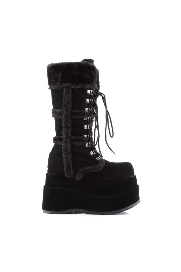 4 1/2″” (11.4cm) Stacked Platform Calf Boot with Faux Fur Lining and Detail