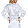 Fabienne is an elegant dressing gown decorated with stunning lace. The lace cuffs give a sophisticated look making this design really eye catching! A thong is also included. This item arrives packaged in an organza bag and Beauty Night box.