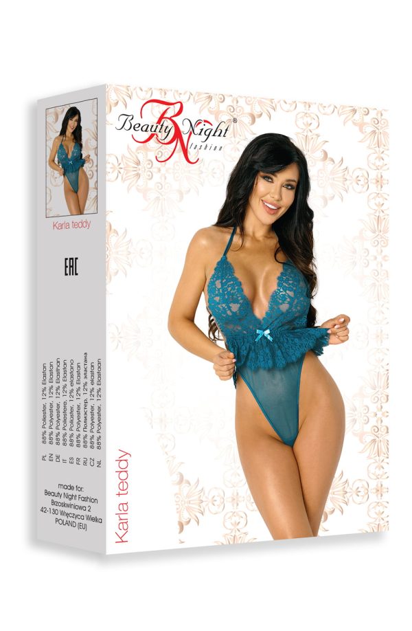 A seductive teddy that features delicate lace and soft transparent mesh combined to enhance your shape. Karla arrives packaged in a Beauty Night Gift Box. Beauty Night gift boxes are a gift in themselves! Made from premium materials, they are laser-spot printed with a front and back image of the garment, and carry the Beauty Night logo both as a raised image and a hologram. This is a mark of quality and authenticity. The box also carries sizing and fabric information These boxes are very pretty, and are also useful for storage. There is an organza bag to keep the garment in or use as a laundry bag. Within the outer sleeve, there is a lovely embossed presentation box with the Beauty Night logo in beautiful gloss white.