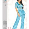 The Missy Set in turquoise is a luxurious pyjama set that combines elegance and comfort, perfect for any woman. Here’s what makes this set special: Key Features The luxurious delicate, shiny fabric provides incredible comfort and a sophisticated look. Subtle lace details on the sleeves and waist add charm and sensuality. A deep V-neckline highlights the bust, enhancing femininity. The elastic waistband ensures a perfect fit and maximum comfort. Long, loose pants offer full freedom of movement and comfort throughout the night. The Missy Set in turquoise makes an excellent gift, presented in elegant packaging with a product photo. Indulge in a touch of luxury with the Missy Set!