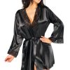 Feel effortlessly elegant with the Sherie Peignoir Black, the perfect robe for any woman who wants to blend comfort with style. This black satin robe is your go-to for adding a touch of luxury to your everyday. Key Features: Luxurious satin fabric: Made from smooth, silky satin with a gorgeous sheen that feels as good as it looks. Lace details: Delicate lace accents on the neckline, sleeves, and back add an extra dose of charm and elegance. Timeless black colour: A classic, sophisticated shade that’s perfect for any occasion. Adjustable belt: Cinches at the waist to highlight your feminine curves for a flattering fit. Complete set: Includes matching thong for a coordinated, polished look. Perfect gift: Arrives in elegant packaging, making it an ideal luxury gift for someone special—or a treat for yourself! Wrap yourself in style and comfort with the Sherie Peignoir Black—the ultimate choice for adding a little luxury to your wardrobe!