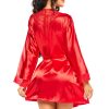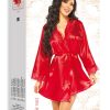 Unleash your inner elegance with the Sherie Peignoir Red—the ultimate combination of luxury and style for any woman’s wardrobe! Made from high-quality satin, this red satin robe blends comfort with irresistible charm, making it perfect for special moments. Key Features: Luxurious satin fabric: Soft, shiny satin that drapes beautifully over your body for a glamorous look and feel. Sensual red color: Bold, eye-catching red that boosts your confidence and makes a statement. Delicate lace details: Feminine lace accents on the neckline and sleeves add a touch of elegance and sophistication. Adjustable waist tie: Customize the fit with a satin belt that flatters your silhouette. Complete set: Comes with matching thong for an effortlessly chic look. Gift-ready packaging: Packaged in an elegant box, making it a perfect luxury gift for someone special—or a treat for yourself! Add a dash of glamour to your life with the Sherie Peignoir Red—the perfect choice for romantic nights or indulgent mornings!