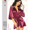 Step into luxury with the Summer peignoir burgundy robe, a stunning blend of elegance and comfort that makes every moment at home feel special. Whether it’s a romantic evening or a cosy night in, this satin robe brings a touch of glam to your everyday. Key Features: Luxurious satin fabric: Soft, silky satin gently wraps around your body, offering the ultimate in comfort and sophistication. Chic burgundy design: The deep burgundy colour, paired with delicate lace accents on the shoulders, adds a touch of charm and elegance to this burgundy robe. Adjustable satin belt: Easily tailor the fit with the satin belt that highlights your waist for a flattering look. Versatile style: Whether you’re enjoying a relaxing evening at home or preparing for a special night, this satin peignoir suits every occasion. Complete set: Includes matching thong for a coordinated, head-to-toe look. Wide sleeves: Loose, wide sleeves give the robe an airy, stylish feel. Elegant detailing: Every element is crafted with care, ensuring durability and a luxurious finish. Exclusive packaging: Comes in a beautiful package with a product photo, making it an ideal gift for a loved one—or a treat for yourself! The Summer peignoir burgundy satin robe is the perfect choice for any woman who wants to feel both elegant and comfortable. Whether you’re giving it as a luxury gift or adding it to your own wardrobe, this robe makes every moment feel special!