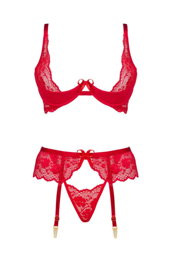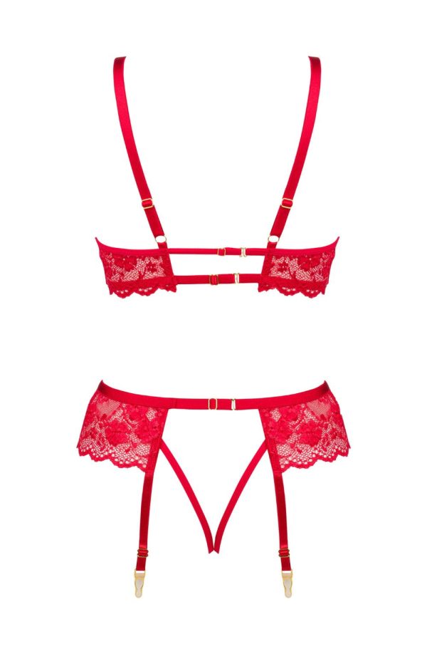Discover the sensual Rose Set red, an exquisite lingerie set featuring a bra, thong, and garter belt. Crafted from delicate red lace, this alluring design enhances your natural beauty, making you feel feminine and sexy. Perfect for romantic evenings or as a special gift. Key Features: Luxurious Lace: Delicate and intricate for an elegant look. Deep Red Colour: Accentuates natural beauty and boosts confidence. Sheer Materials: Gently wrap the body, providing comfort and sensuality. Adjustable Straps and Fastenings: Ensure a perfect fit. Beautifully Decorated Bra and Thong: Elegantly highlight the body’s features. Comfortable Wear: Designed for all-day and night comfort. Elegance and Sophistication: Adds confidence and makes every moment special. Ideal Gift: Packaged in elegant wrapping, perfect for a present. The Rose Set red is a perfect gift choice. Its deep colour and subtle finishes make this lingerie both elegant and incredibly sensual, ensuring any woman feels special and cherished.