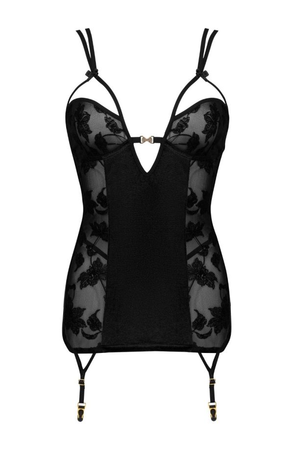 Get ready to wow with the stunning “Xiomara” chemise – a luxurious combination of delicate lace and velvety perfection that hugs your curves just right! With underwired cups giving your bust that extra wow factor and adjustable straps for the perfect fit, you’ll feel as good as you look. The back? Oh, it’s all about that elegant lace-up design that’s sure to leave a lasting impression. Add the garter straps, and you’ve got a look that’s effortlessly sensual from every angle. Plus, the matching velvet string panties? Total knockout! Packaged in a sleek, elegant box with a product picture, this set is ready to bring the romance for those extra special nights! (stockings not included but available separately)