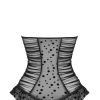 Introducing the “Carolotta” Crotchless Teddy, a tantalising blend of frilly tulle and playful polka dot patterns. This seductive design features a charming ribbon lace-up frognt, adding a touch of flirtatious charm to your lingerie collection. Crafted to captivate, the “Carolotta” Teddy promises to ignite passion and allure with its irresistible combination of sophistication and playfulness. Perfect for indulging in intimate moments or adding excitement to your wardrobe, embrace your femininity and unleash your inner confidence with the “Carolotta” Crotchless Teddy. Arrives packaged in a Beauty Night box.