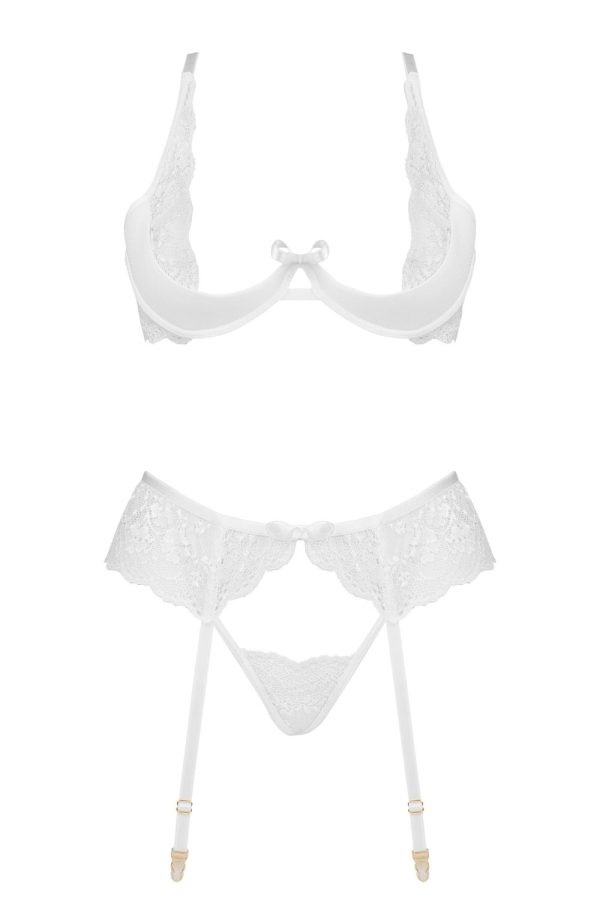 Discover the sensual Rose Set white, an exquisite lingerie set featuring a bra, thong, and garter belt. Crafted from delicate white lace, this alluring design enhances your natural beauty, making you feel feminine and sexy. Perfect for romantic evenings or as a special gift. Key Features: Luxurious Lace: Delicate and intricate for an elegant look. White: Accentuates natural beauty and boosts confidence. Sheer Materials: Gently wrap the body, providing comfort and sensuality. Adjustable Straps and Fastenings: Ensure a perfect fit. Beautifully Decorated Bra and Thong: Elegantly highlight the body’s features. Comfortable Wear: Designed for all-day and night comfort. Elegance and Sophistication: Adds confidence and makes every moment special. Ideal Gift: Packaged in elegant wrapping, perfect for a present. The Rose Set white is a perfect gift choice. Its subtle finishes make this lingerie both elegant and incredibly sensual, ensuring any woman feels special and cherished.