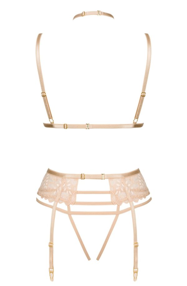 Discover the enchanting Noemi Lingerie Set, featuring a bra, open thong, and garter belt. Crafted from delicate lace, this set accentuates your natural beauty and exudes femininity and sensuality. Key Features: High-Quality Lace: Exquisite and delicate, adding a luxurious touch. Nude Colour: Elegantly highlights natural beauty. Transparent Materials: Lightly envelop the body Adjustable Straps and Fastenings: Ensure an ideal fit. Intricate Lace Detailing: Elegantly enhances the bra and thong Comfortable Fit: Designed for all-day and all-night wear. Elegance and Sophistication: Boosts confidence Ideal Gift: Packaged in an elegant box with product photos, perfect for gifting. The Noemi Set is a perfect gift, combining elegance and sensuality to make every woman feel special and appreciated.