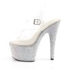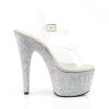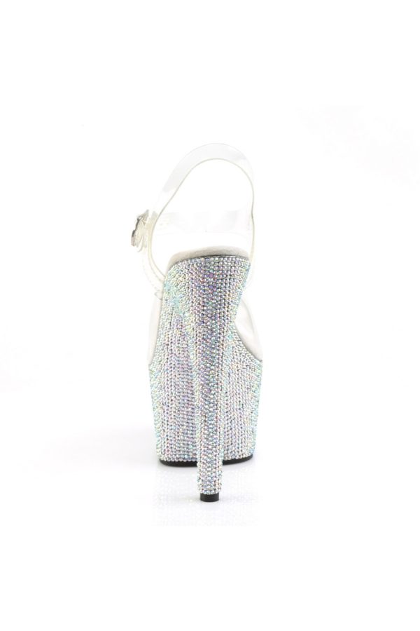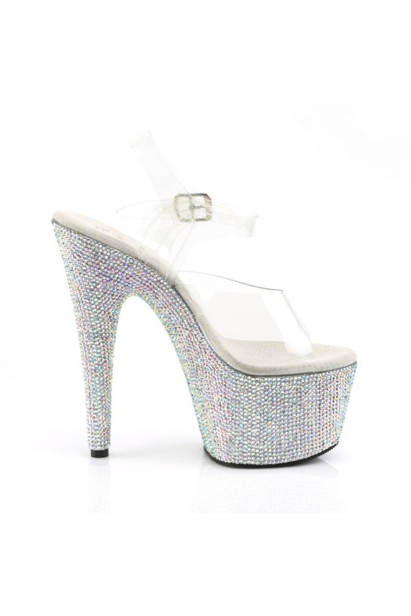 7″” (17.8cm) Heel, 2 3/4″” (7cm) Platform Ankle Strap Sandal Featuring Rhinestone Encrusted All-Over Platform