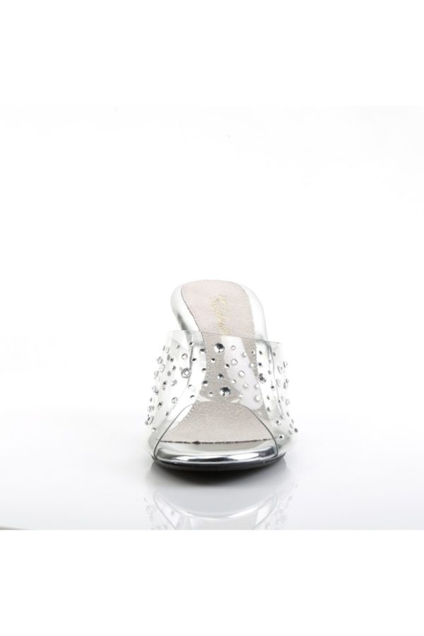 3″” (7.6cm) Heel, 1/8″” (0.3cm) Platform Slide Featuring Rhinestone Embedded on Vamp