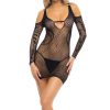 Celebrate your curves in style with this Black Plus Size Bodystocking Dress featuring shimmering detail. The chic design enhances and flatters your figure, while the intricate body stocking pattern adds a touch of allure. The shimmering detail brings a glamorous element, ensuring you stand out at any intimate occasion or night on the town. Embrace your confidence and showcase your sophistication with this stunning plus-size black bodystocking dress (gloves and thong are not included)
