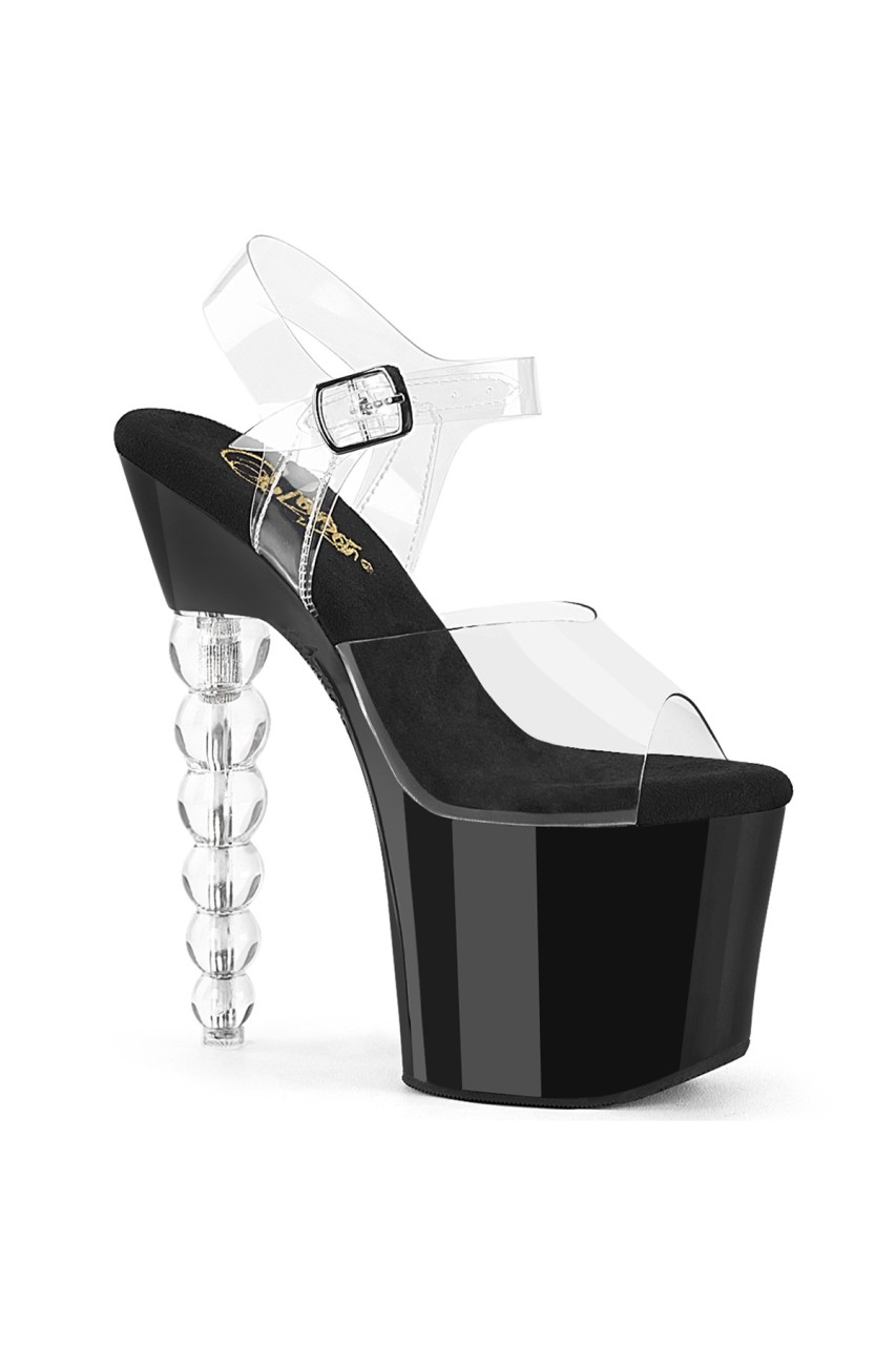 7″” (178mm) Stacked Beaded Heel, 3 1/4 (83mm) Platform Ankle Strap Sandal Featuring Contrast Color Bottom