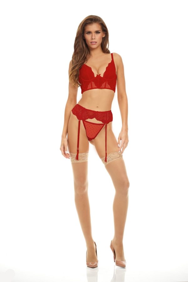 A stunning design which comprises of bra deep suspender belt and thong sold as separates. Euterpe arrives packaged in its own Roza box. Colour options White or Black.