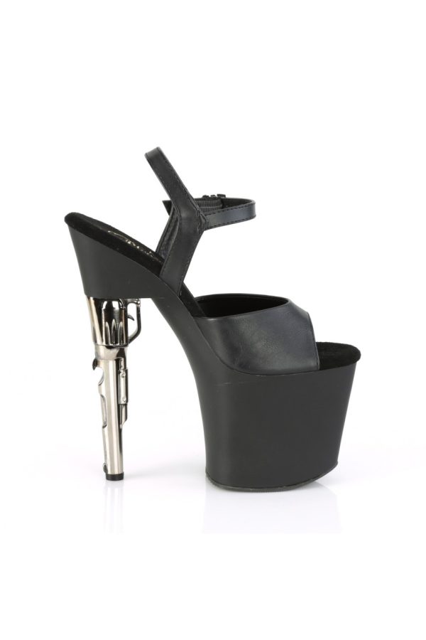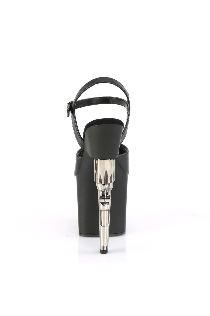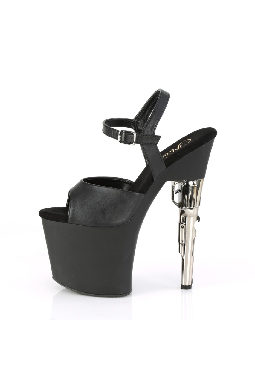 7 1/2″” (191mm) Gun Heel, 3 1/2″” (89mm) Platform Ankle Strap Sandal