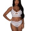 From the Exposed by Magic Silk collection, this style includes: a bralette featuring all-over lace, a keyhole design in front, adjustable shoulder straps with black sliders, strappy details in the back, and a matching cheeky panty with a keyhole design in the back. Soft lace and stretchy mesh in a mesmerizing shade of black. Hand Wash Cold. No Bleach. Dry Flat. 90% Nylon, 10% Spandex