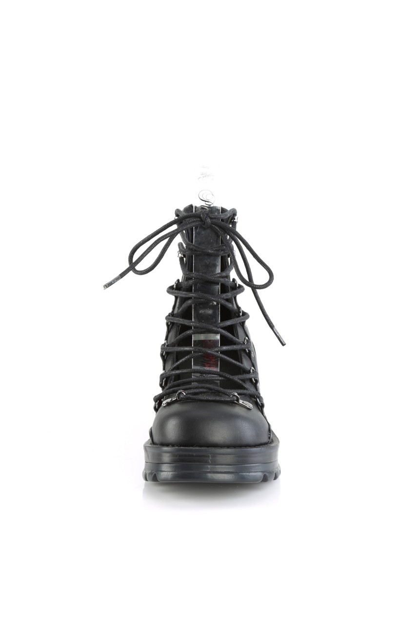 2 3/4″” (70mm) Heel, 1″” (25mm) Platform D-Ring Lace-Up Ankle High Shoe, Back Metal Zip Closure