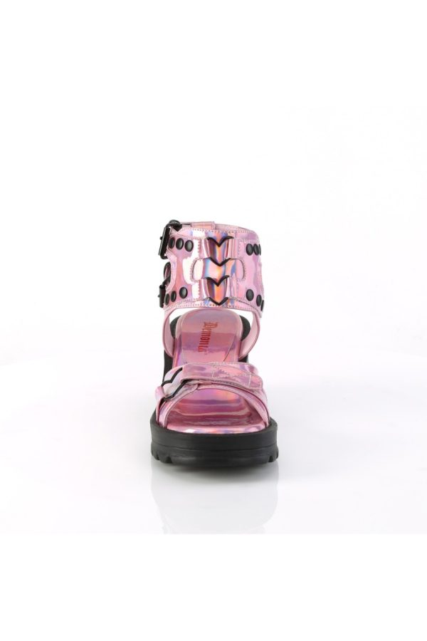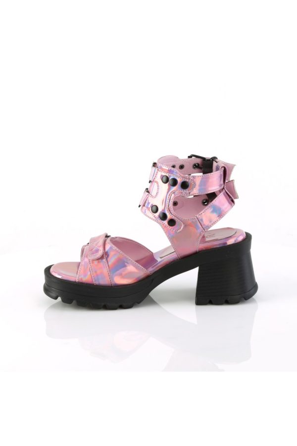 2 3/4″” (70mm) Chunky Heel, 1″” (25mm) Platform Double Buckle Ankle Strap Sandal Featuring Heart Ring and Studding Details