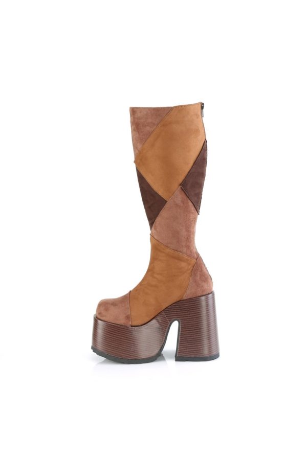 5″” (127mm) Block Heel, 3″” (75mm) Faux Wood Wrapped Platform Patchwood Knee High Boot, Inner Side Zip Closure