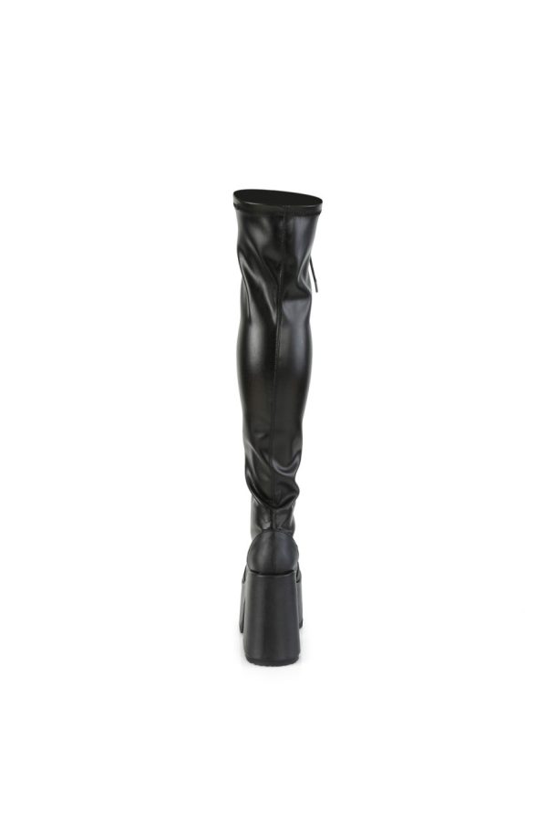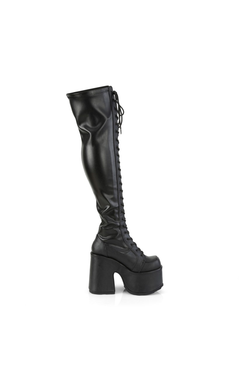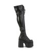 5″” Chunky Heel, 3″” Platform Lace-Up Stretch Thigh-High Boot, Full Length Outside Metal Zip Closure