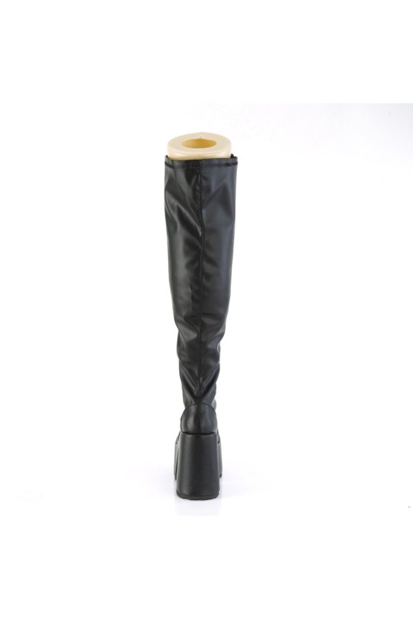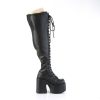 5″” (127mm) Chunky Heel, 3″” (76mm) Platform Lace-Up Stretch Wide Calf Thigh-High Boot, Full Length Outside Metal Zip Closure
