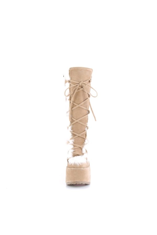 5″” (127mm) Chunky Heel, 3″” (75mm) Platform Lace-Up Knee High Boot Featuring Faux Fur Trim Detail, Full Inner Side Zip Closure