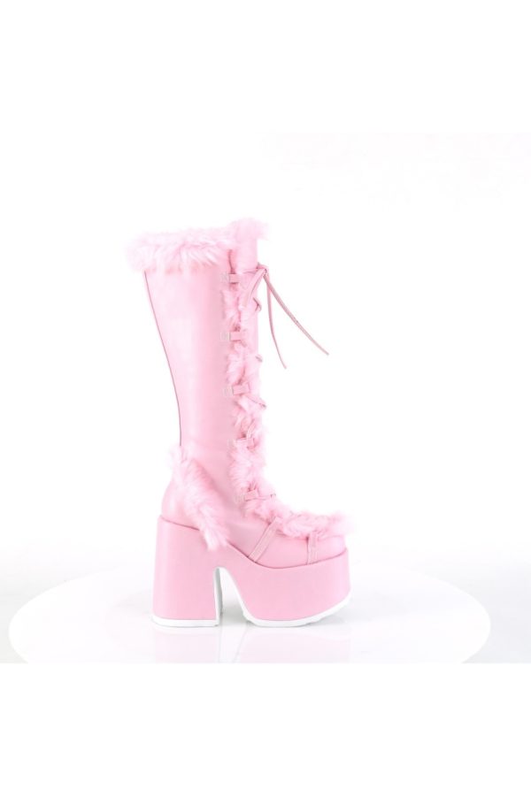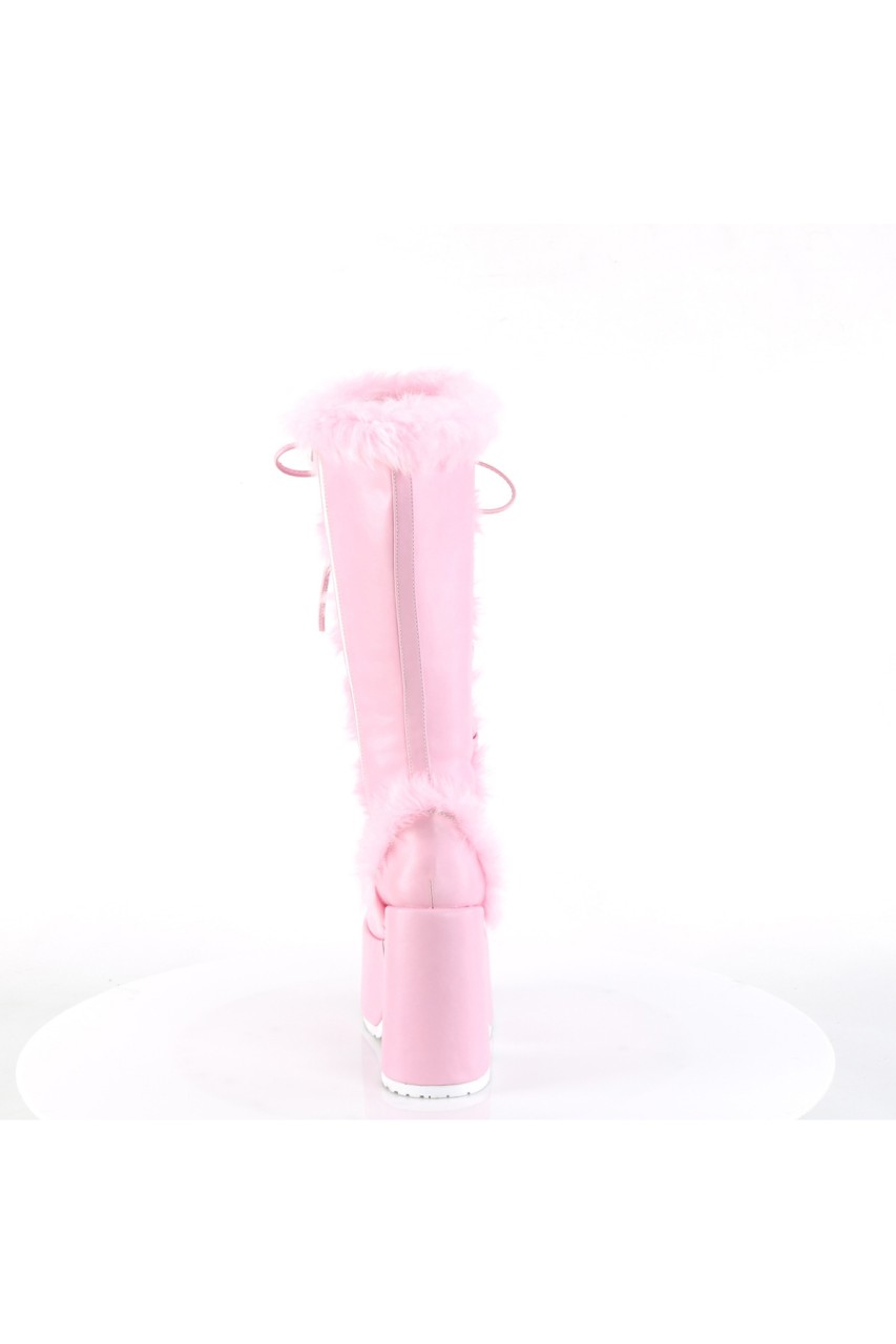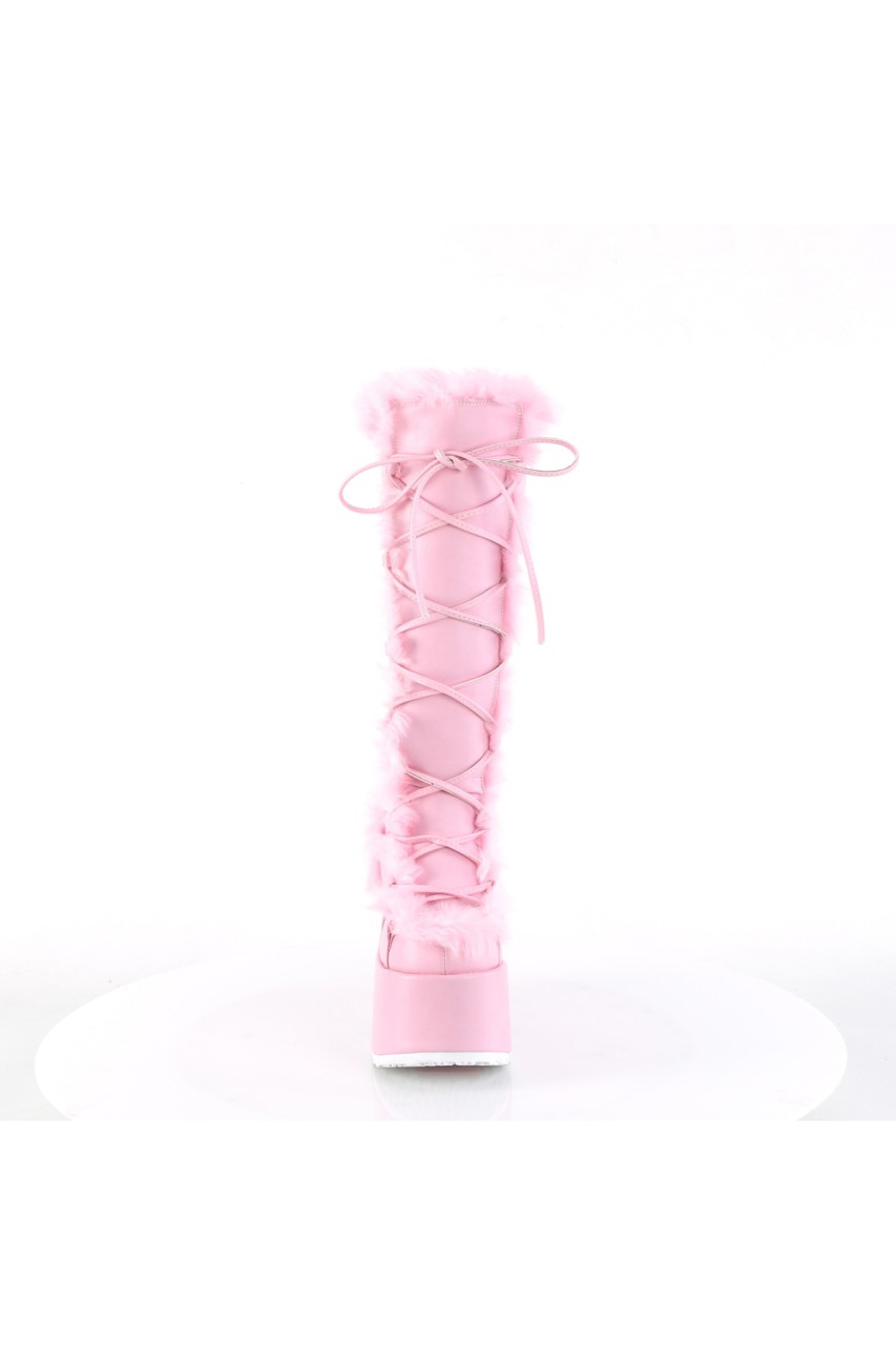 5″” (127mm) Chunky Heel, 3″” (75mm) Platform Lace-Up Knee High Boot Featuring Faux Fur Trim Detail, Full Inner Side Zip Closure
