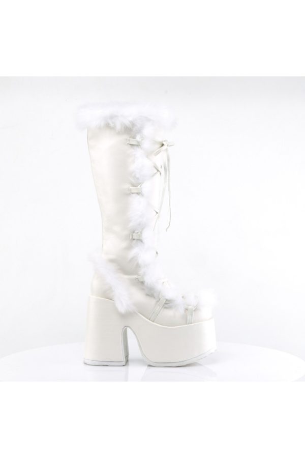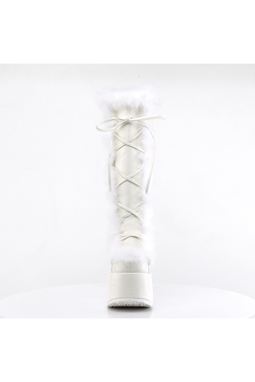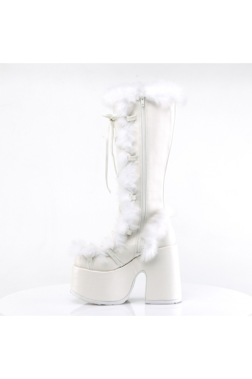 5″” (12.7cm) Platform Goth Punk Gogo Faux Fur Lining and Upper Detail Knee Boot, Full Inner Side Zip Closure