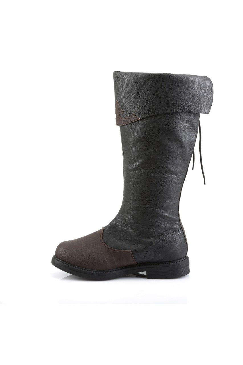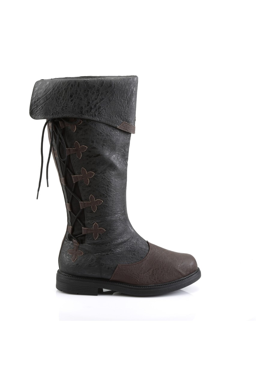 1″” (2.5cm) Flat Heel Men’s Knee High Two Tone Pull-on Boot w/ Decorative Side Lace Detail