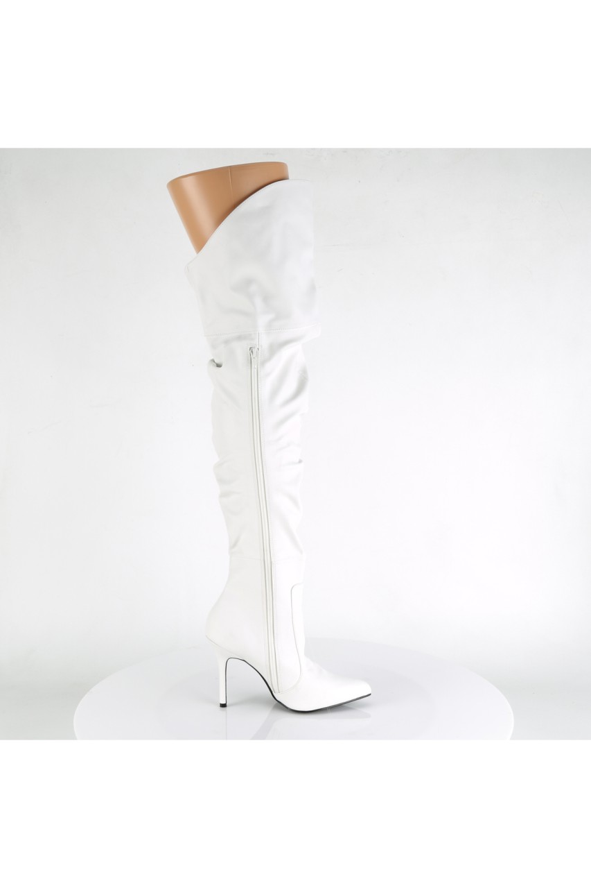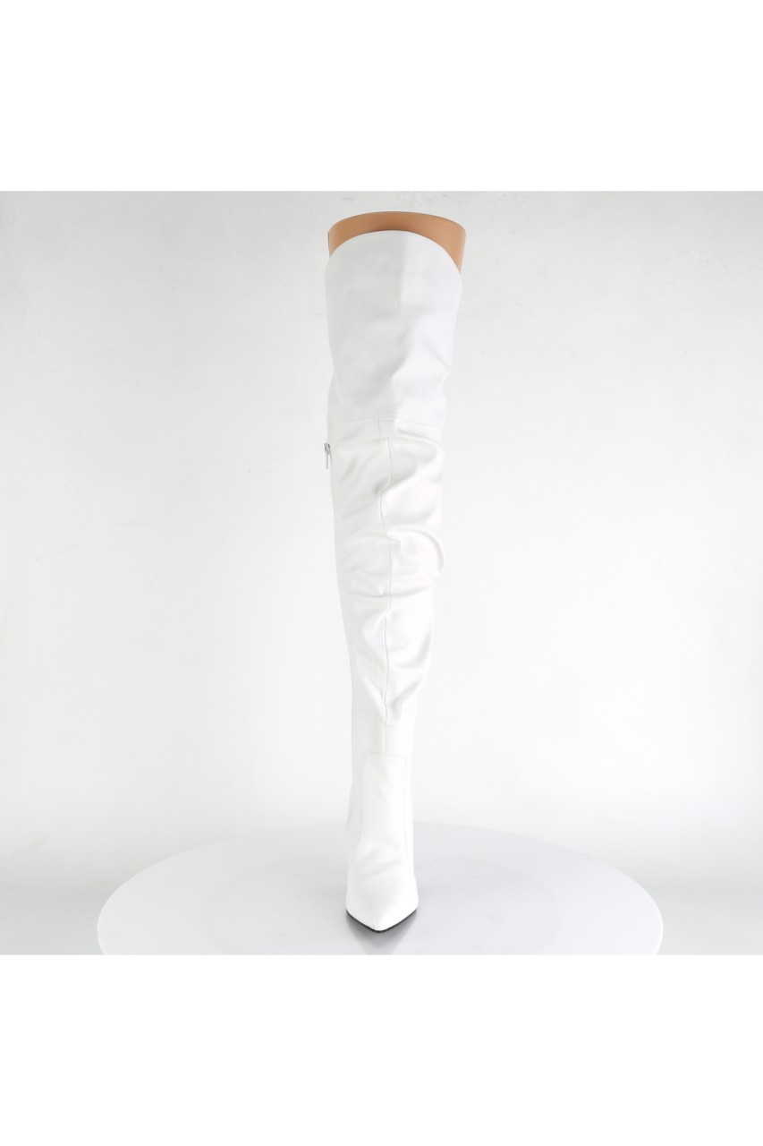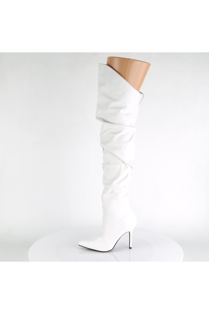 4″” (10.2cm) Sleek Stiletto Heel Thigh High Scrunch Boot Featuring Pointed Toe and Faux Fur Lining, 3/4 Inner Side Zip Closure
