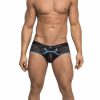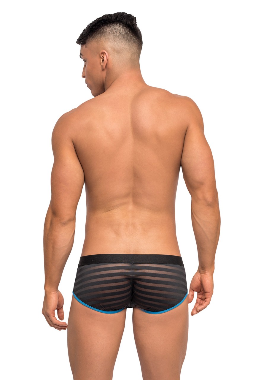 Low Rise mini short with high cut legs, elasticized concealed fly, easy access clip pouch, plush elastic branded waistband, color coordinating trim.