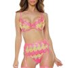 Florence Pink is black with rich pink embroidery. Push up pads and bra straps are removable. Choice of brief or thong sold as separates. Item comes packaged in a lovely Roza box.