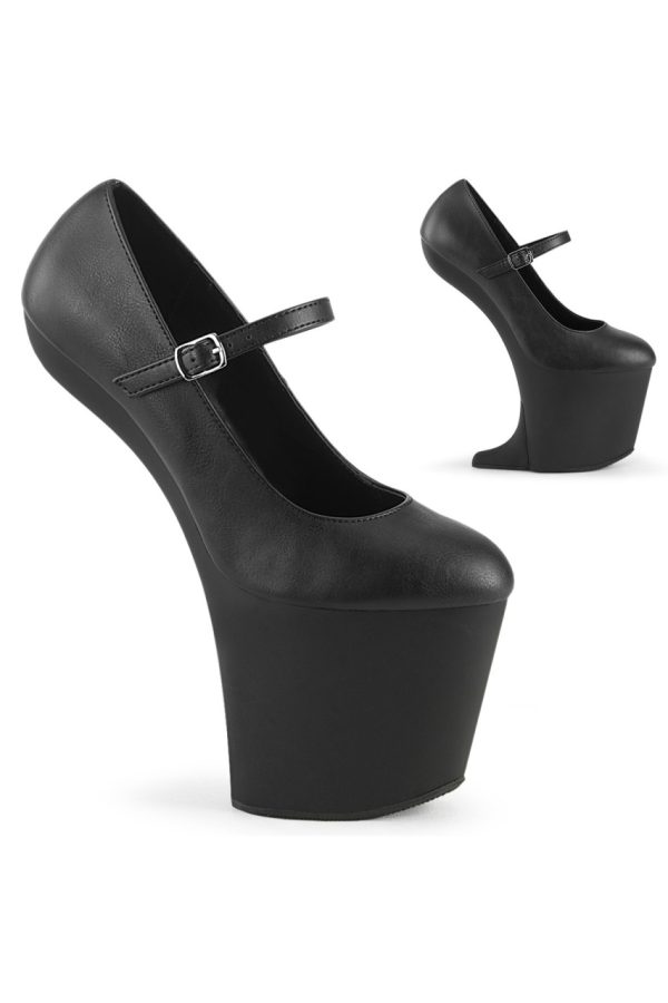 8″” (200mm) Heelless, 3″” (76mm) Platform Mary Jane Pump. Can be Transformed into a Mini Wedge Sandal with the Included Heel