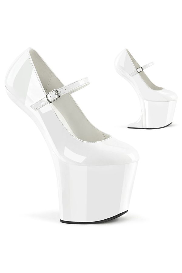 8″” (200mm) Heelless, 3″” (76mm) Platform Mary Jane Pump. Can be Transformed into a Mini Wedge Sandal with the Included Heel