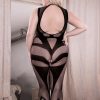 High Neck Patterned Crotchless Bodystocking