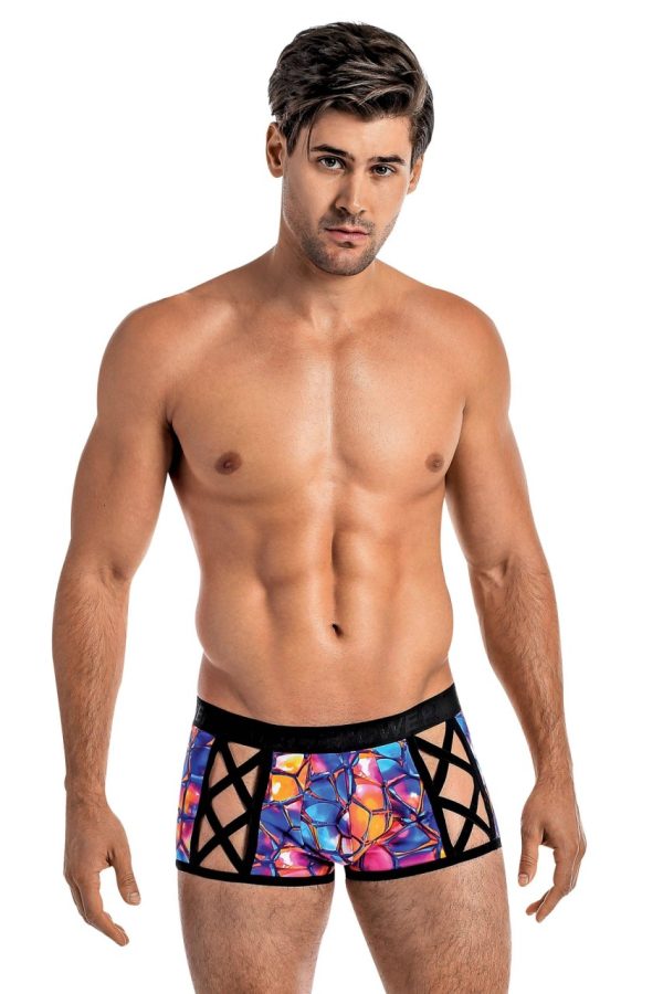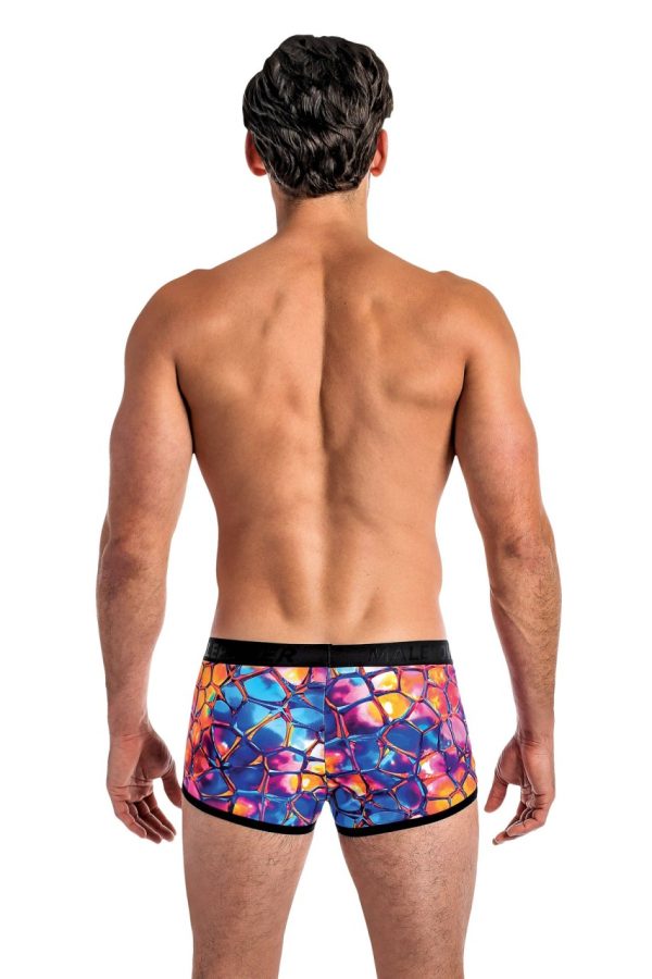 Low rise short, comfort pouch, elastic strap leg accents, and plush embossed branded waistband.80% Nylon, 20% Spandex