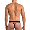 Low rise thong, comfort pouch, elastic strap hip accents and plush embossed branded waistband. 1 inch back.