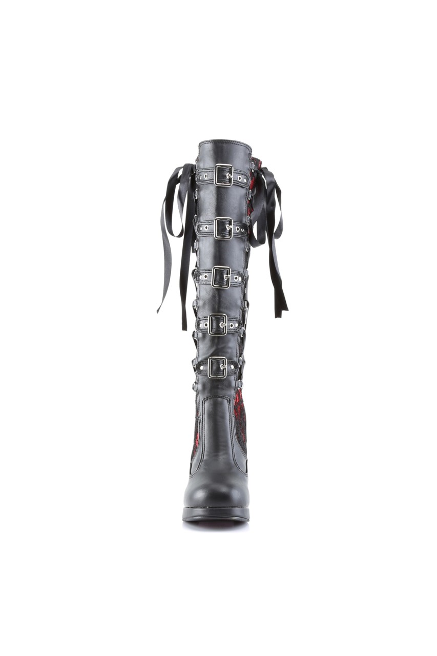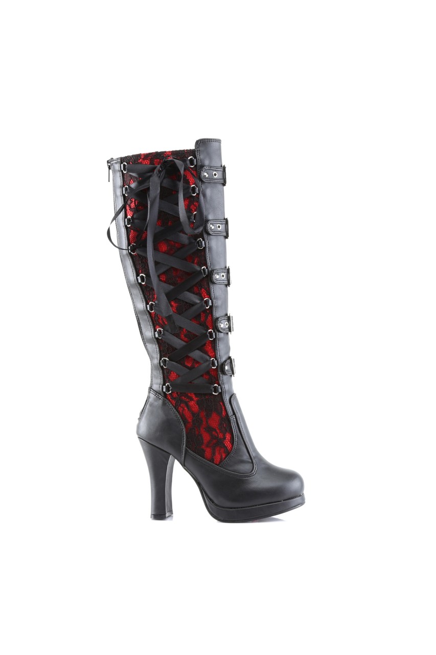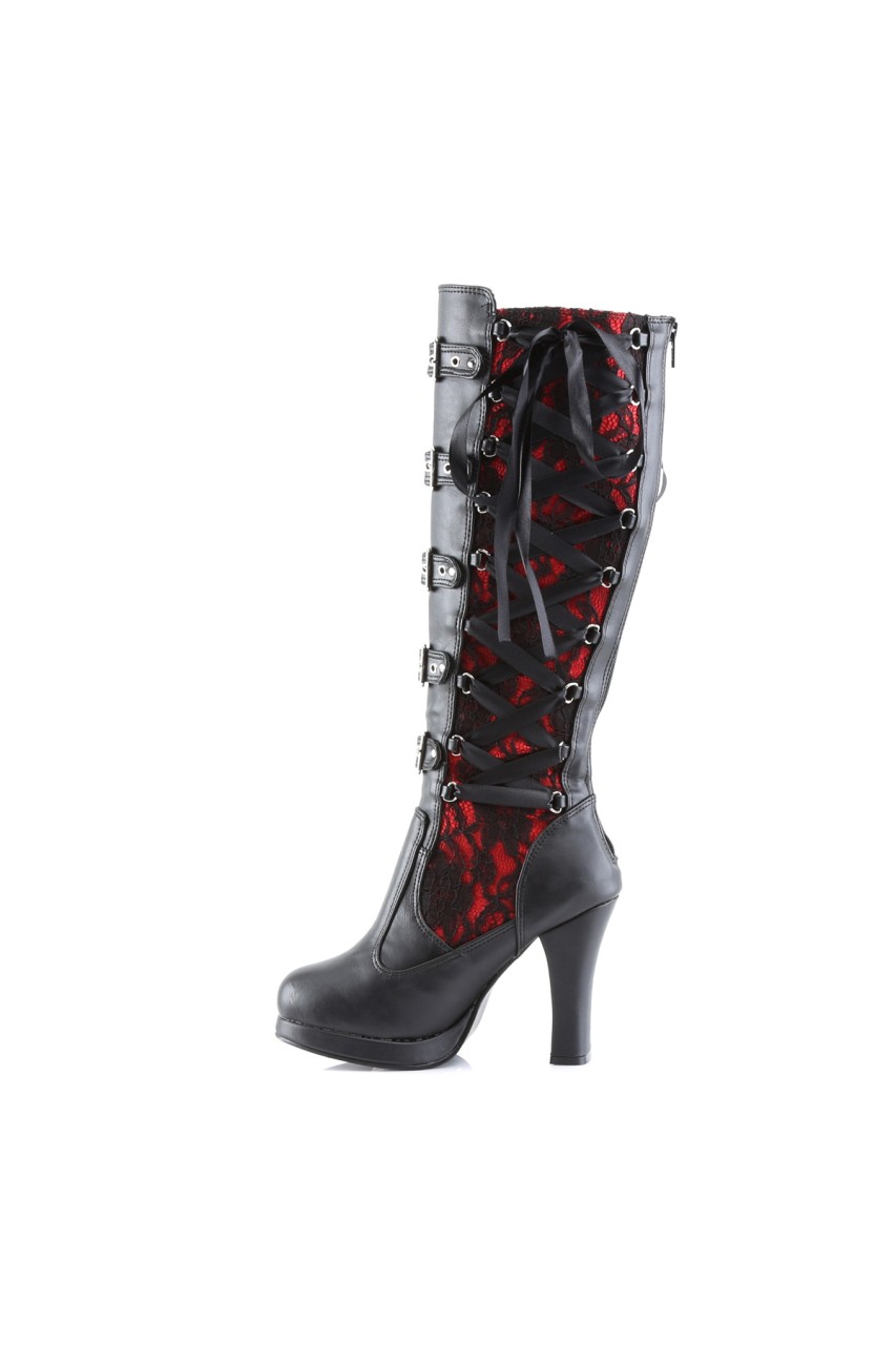 4″” (10.2cm) Heel, 3/4″” (1.9cm) Platform Goth Punk Lolita Corseted 5 Buckle Knee Boot, Full Inner Side Zip Closure