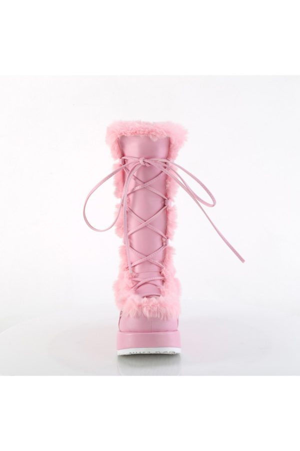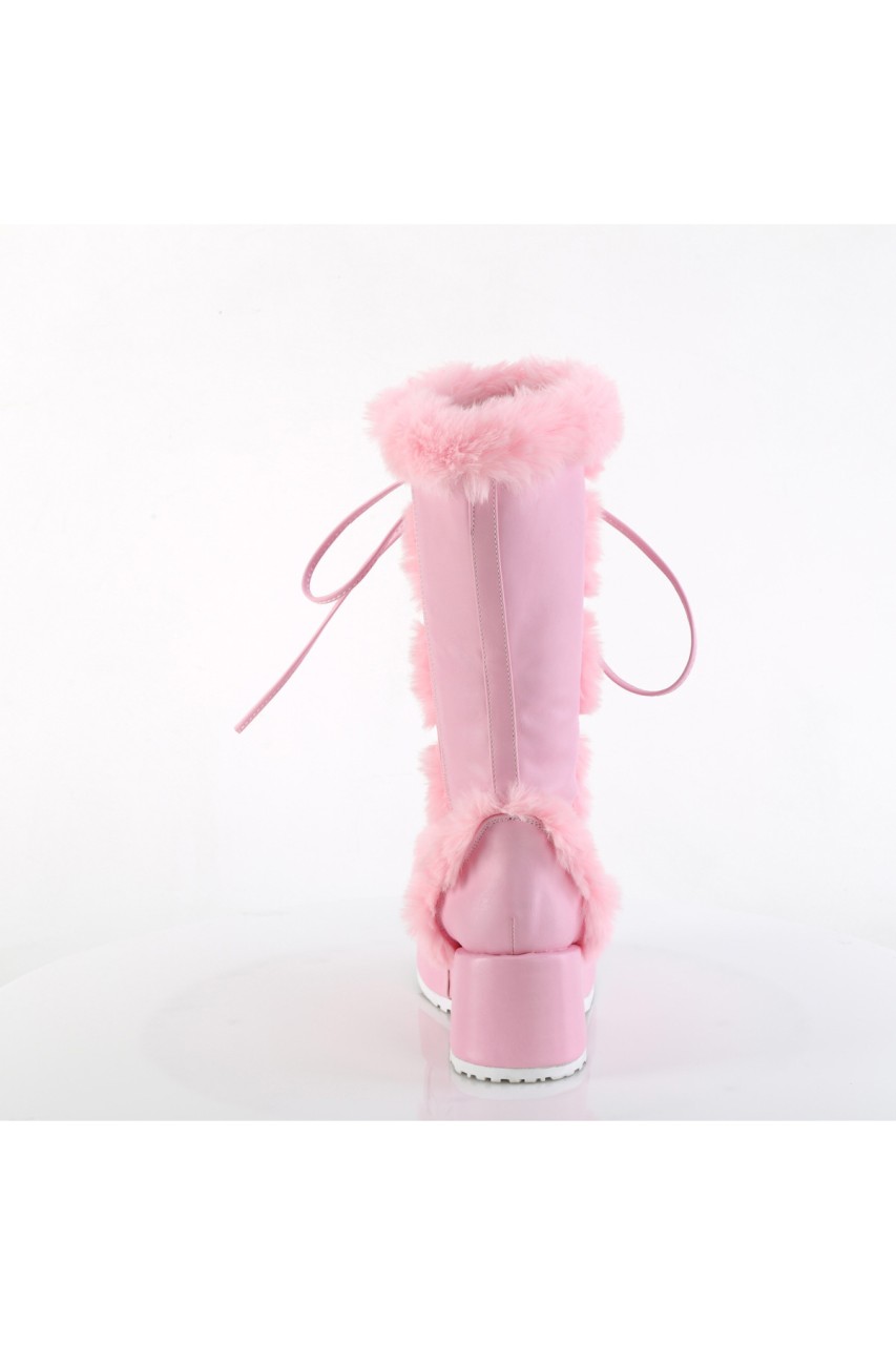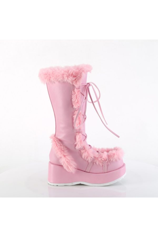 2 3/4″” (70mm) Platform Lace-Up Mid-Calf Boot Featuring Faux Fur Trim Detail, Full Inner Side Zip Closure