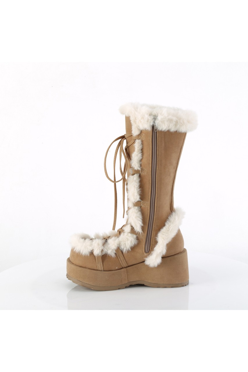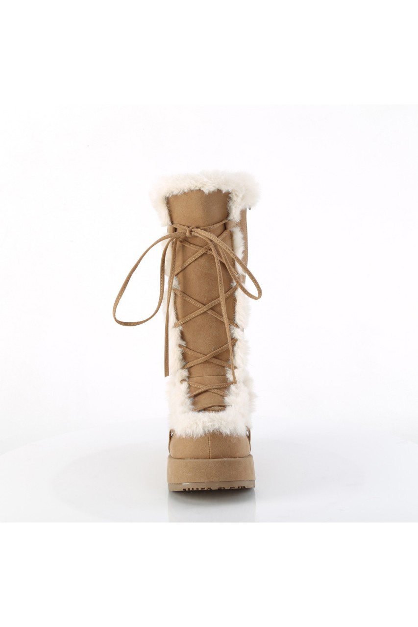 2 3/4″” (70mm) Platform Lace-Up Mid-Calf Boot Featuring Faux Fur Trim Detail, Full Inner Side Zip Closure