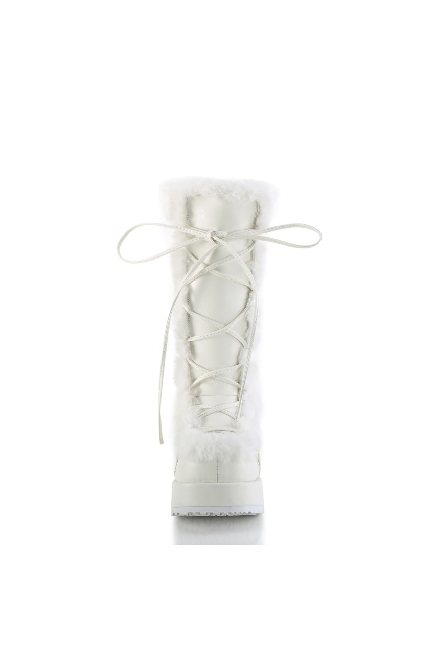 2 3/4″” (70mm) Platform Lace-Up Mid-Calf Boot Featuring Faux Fur Trim Detail, Full Inner Side Zip Closure