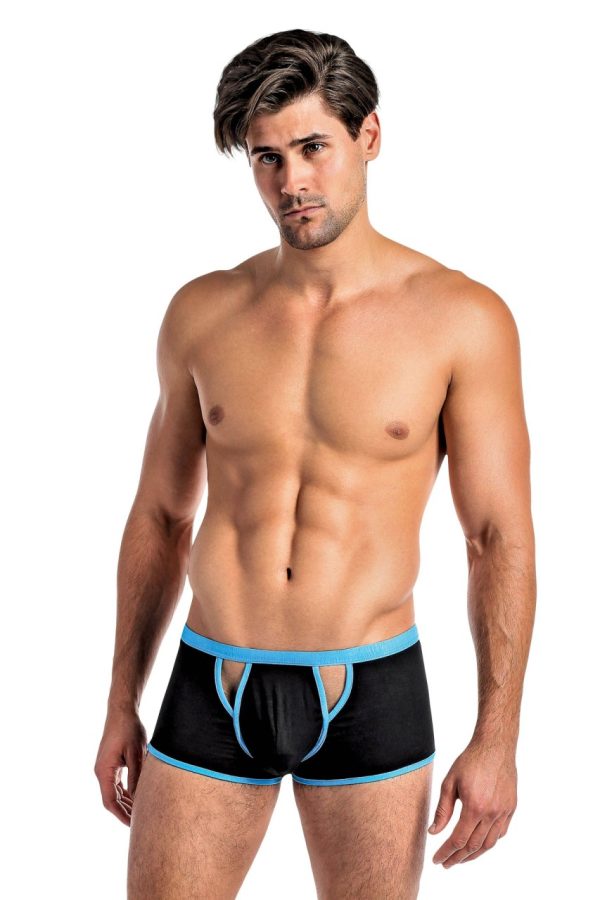 Lo rise Mini short, pouch framed cutout windows, contrasting colored trim.95% Modal 5% Spandex
