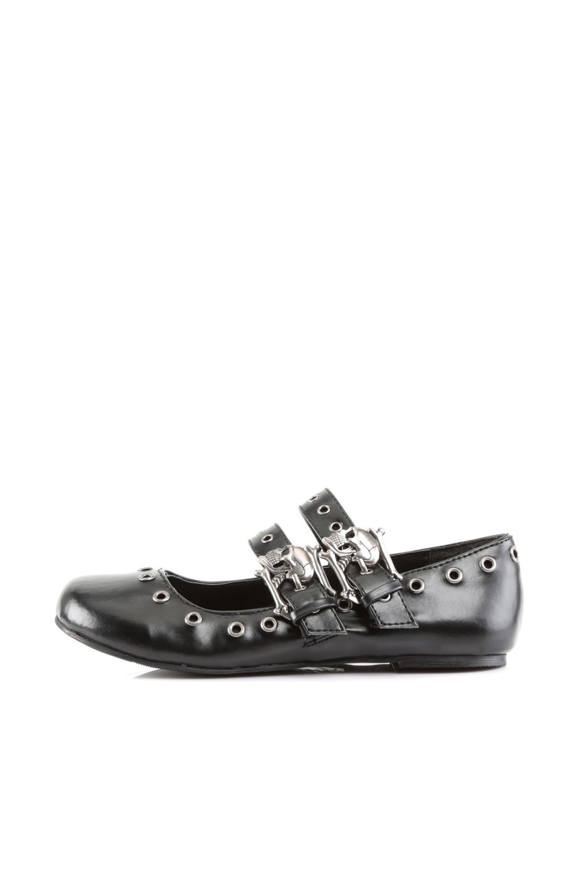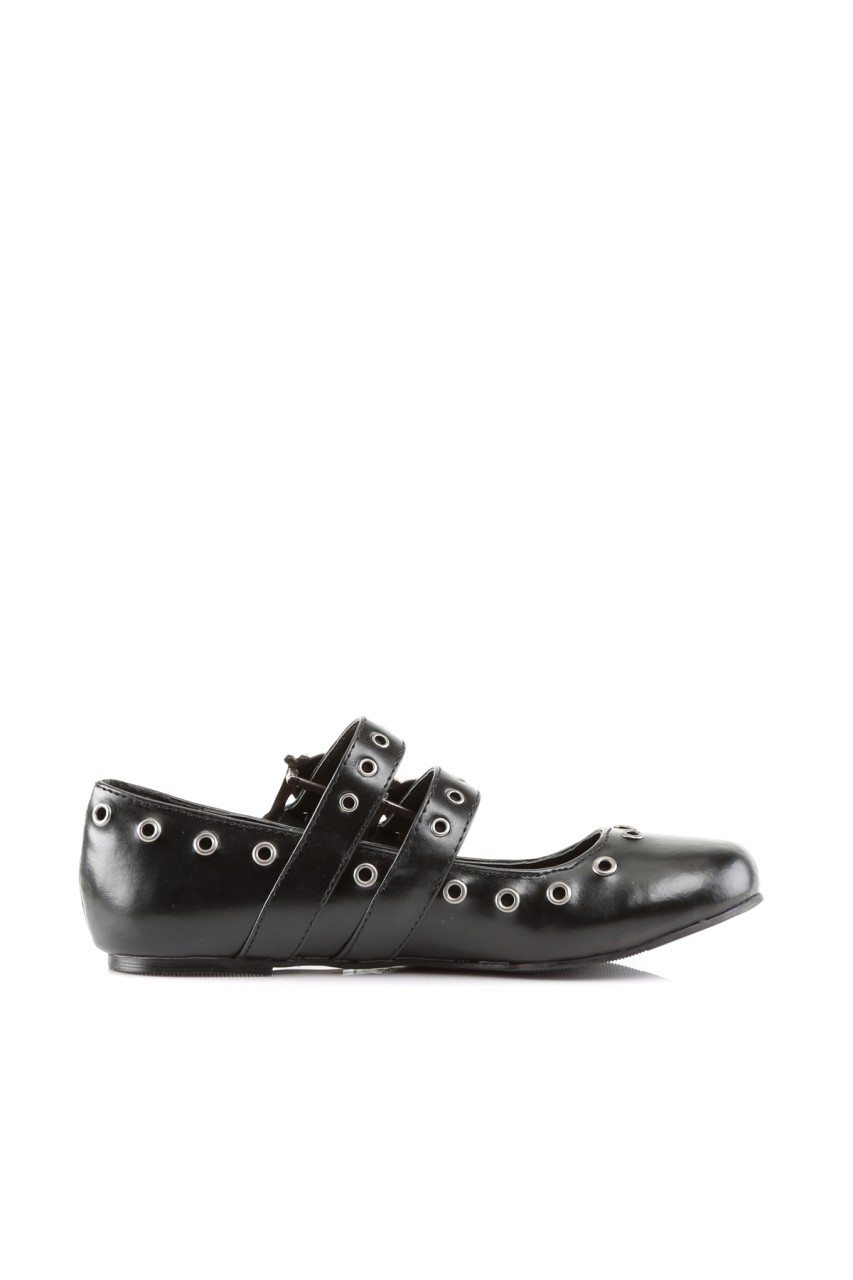 Ballet Flat Double Strap Mary Jane with Skull Buckle Eyelet Detailing
