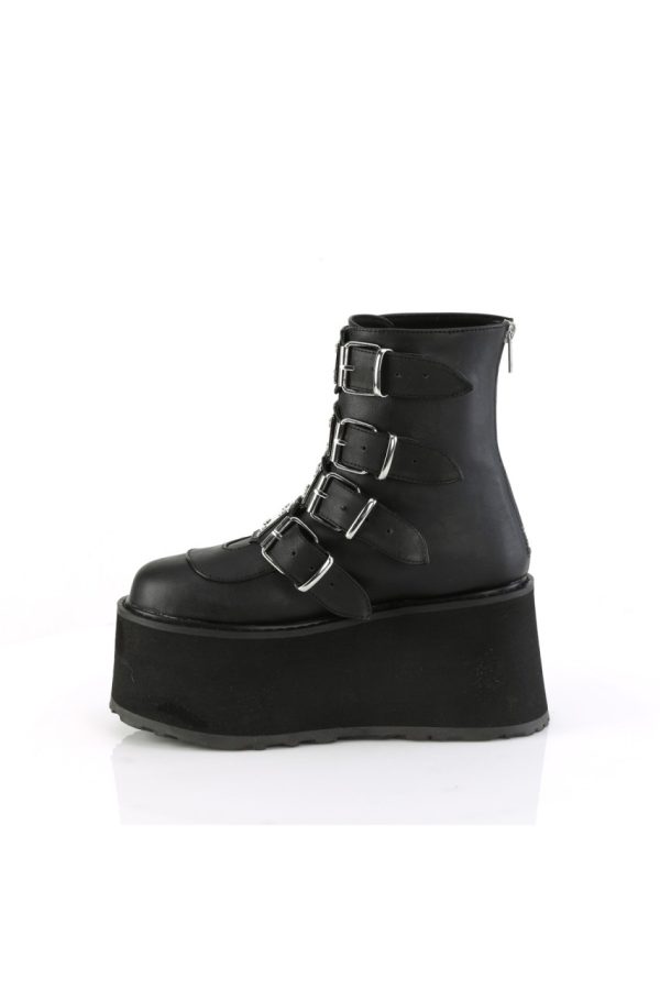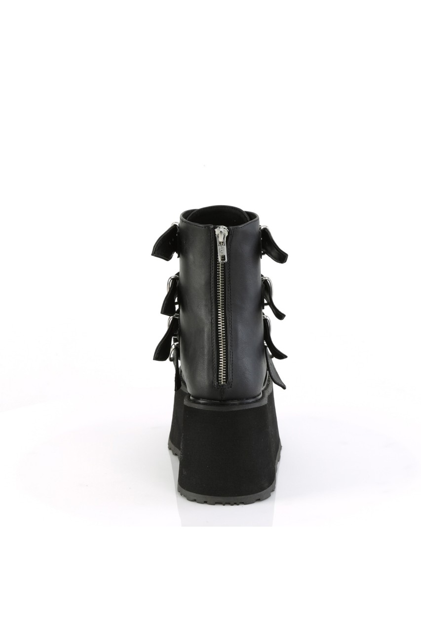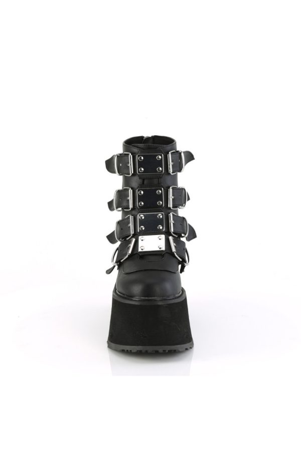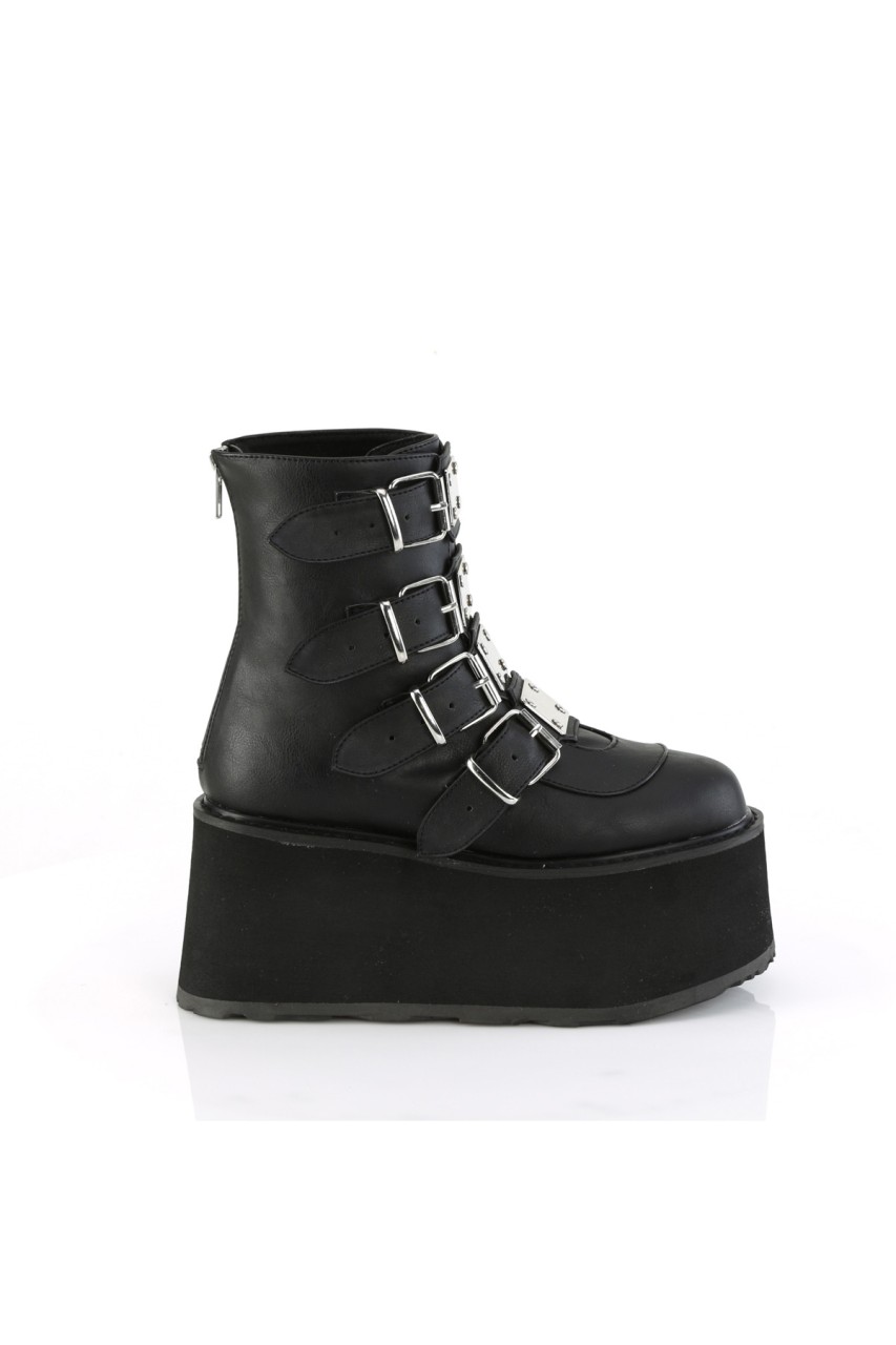 3 1/2″” (90mm) Platform Ankle Boot Featuring 4 Buckle Straps w/ Metal Plates at Center, Back Metal Zip Closure