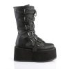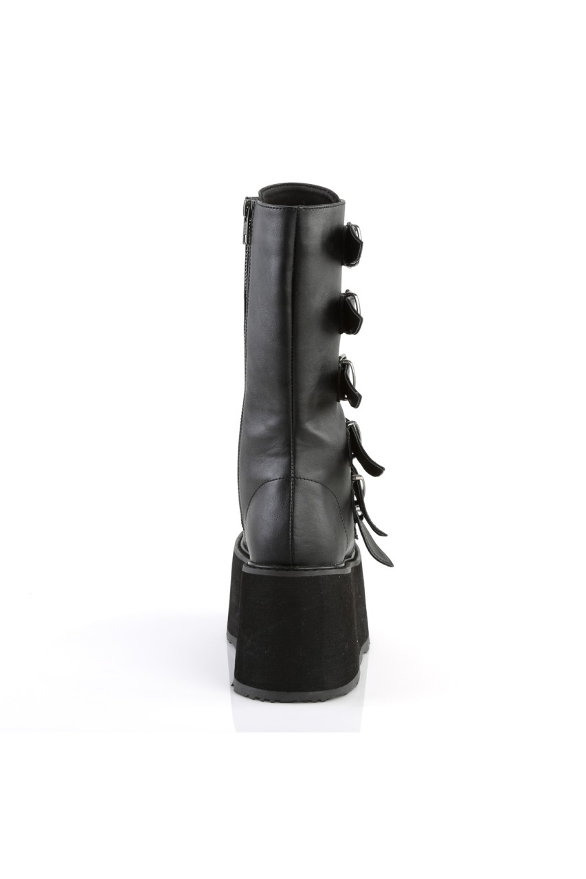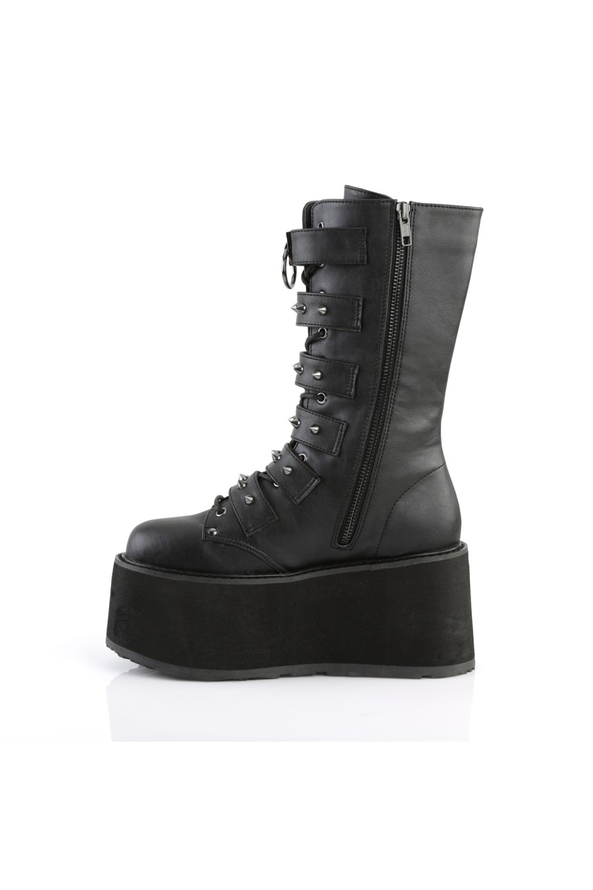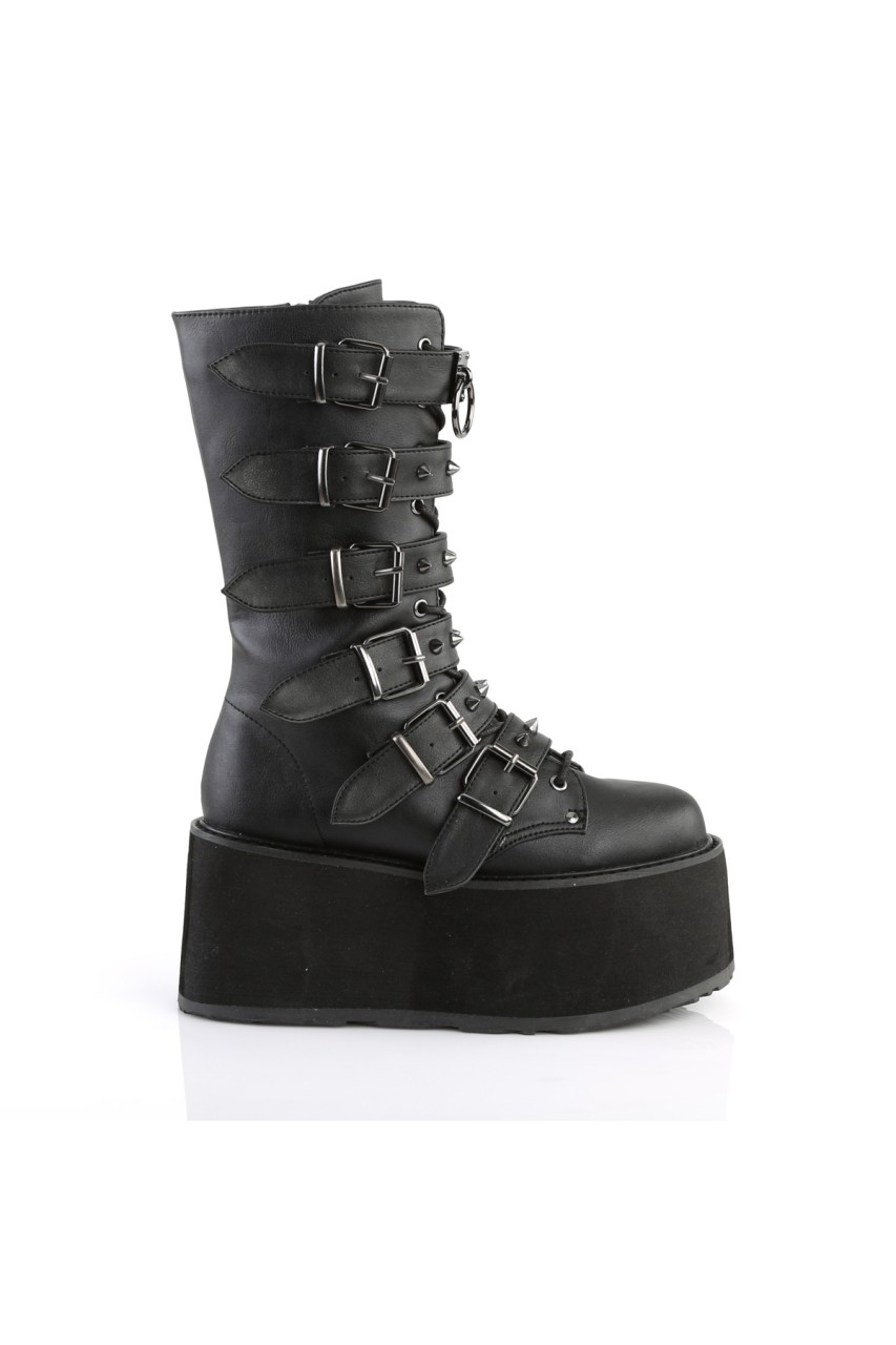 3 1/2″” (90mm) Platform Lace-Up Front Mid-Calf Boot Featuring 6 Cone-Studded Buckle Straps, Inner Side Metal Zip Closure