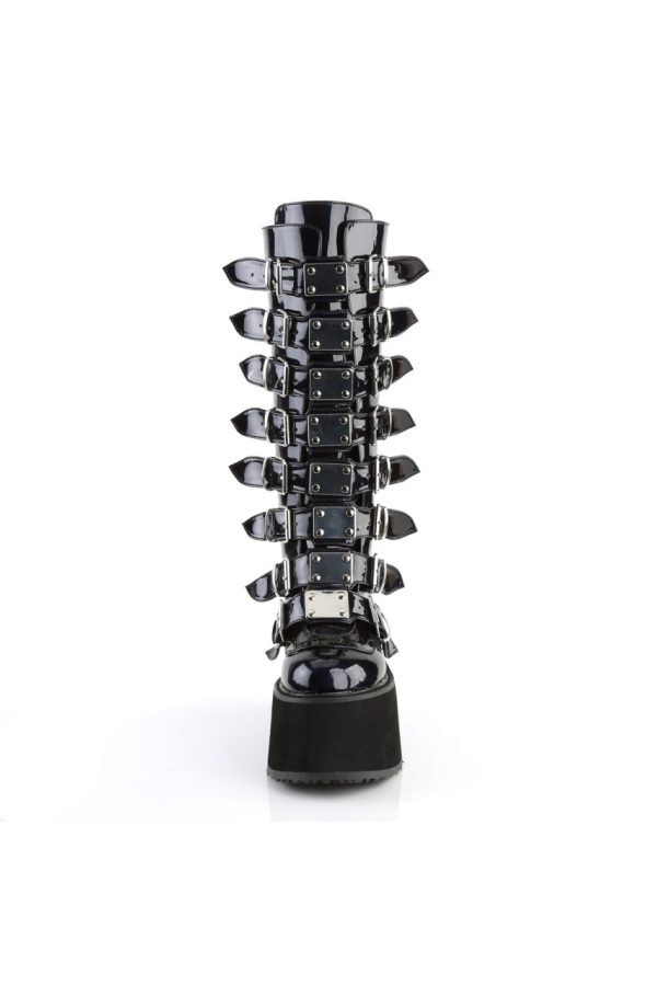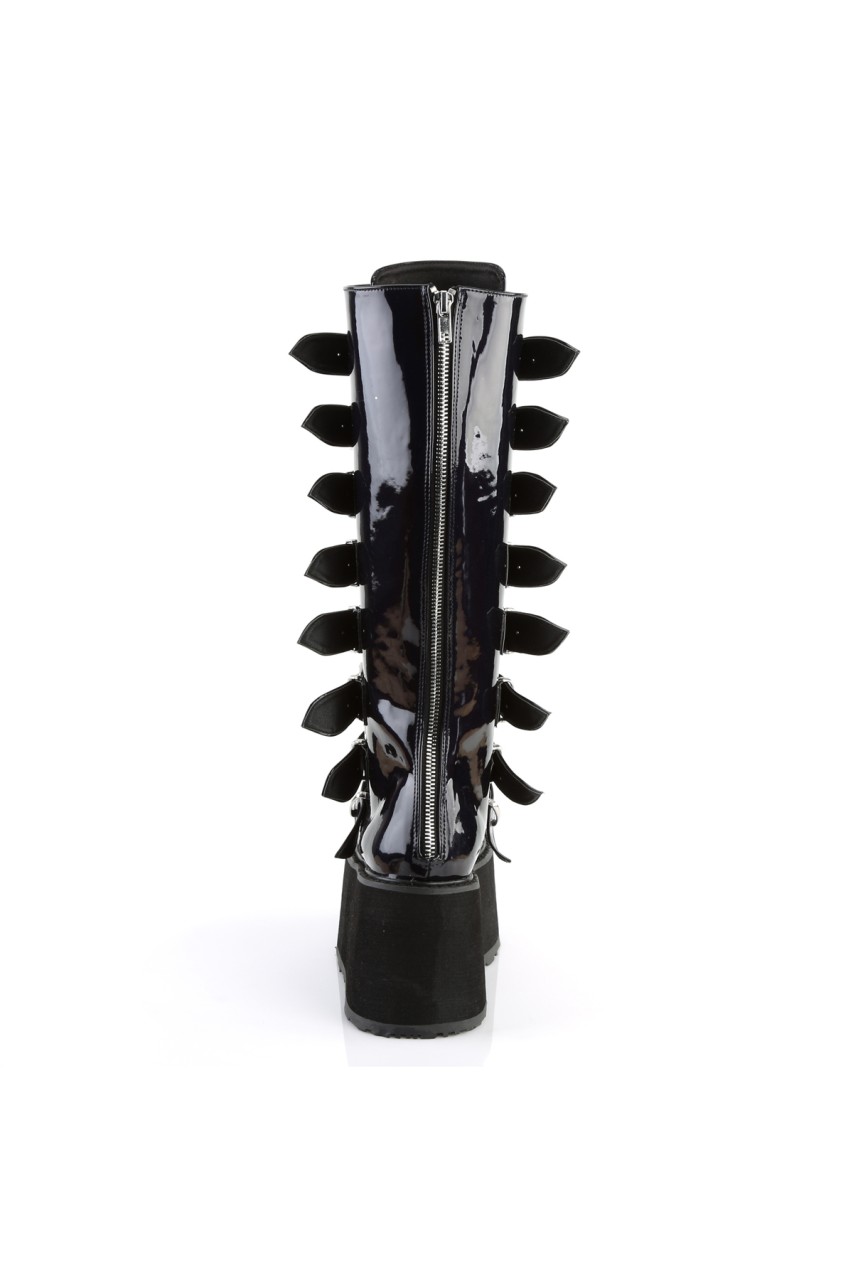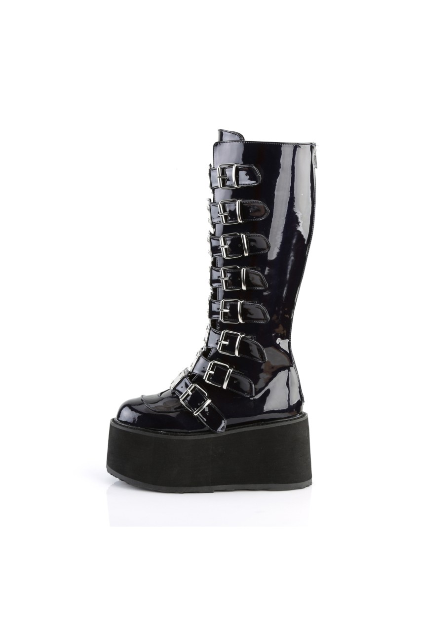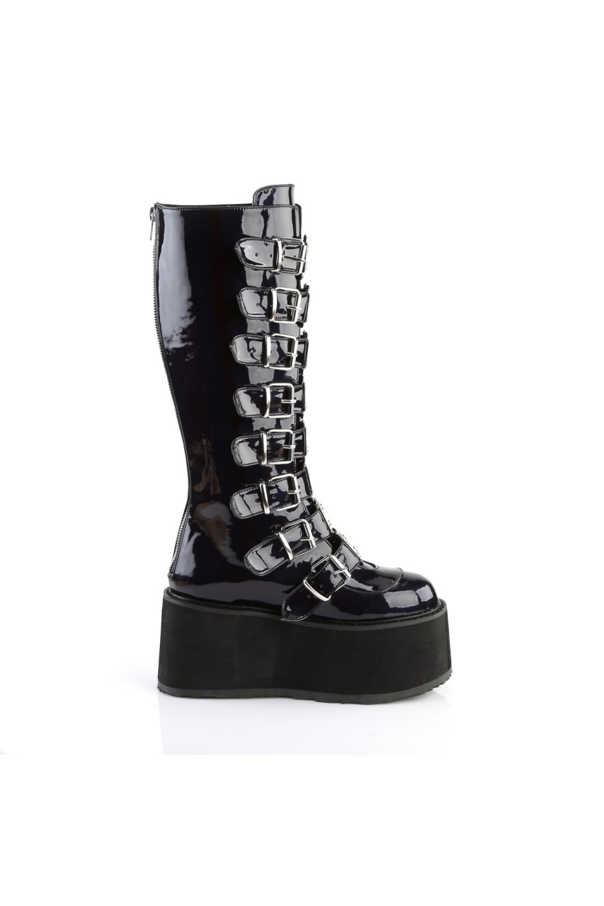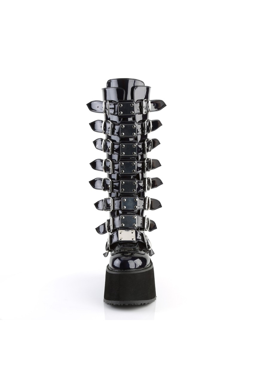 3 1/2″” (90mm) Platform Knee High Boot Featuring 8 Buckle Straps w/ Metal Plates at Center, Back Metal Zip Closure