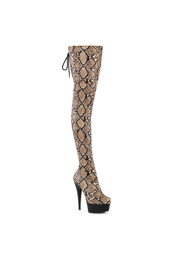 6″” (152mm) Stiletto Heel, 1 3/4″” (45mm) Platform Stretch Snake Print Pull-On Thigh Boot w/Rear Tie Fastening