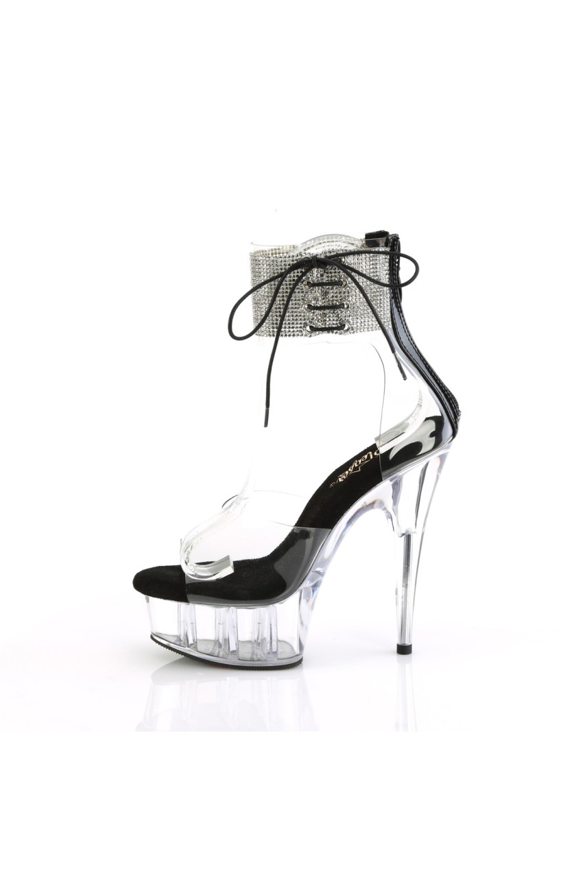 6″” (152mm) Heel, 1 3/4″” (45mm) Platform Close Back Rhinestone Embellished Ankle Cuff Sandal w/Side Lacing, Back Zip Closure