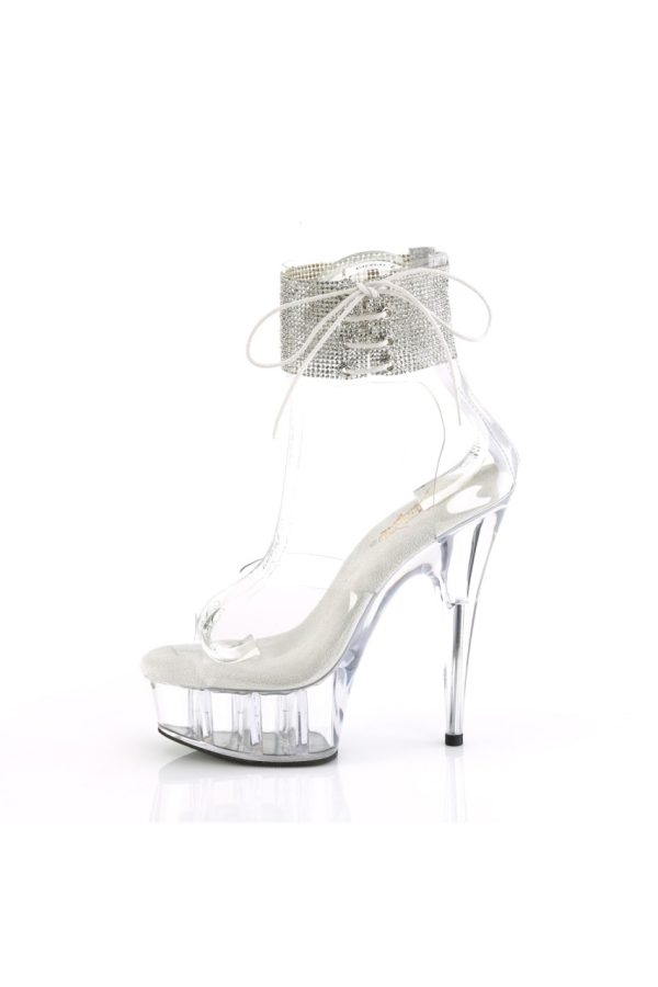 6″” (152mm) Heel, 1 3/4″” (45mm) Platform Close Back Rhinestone Embellished Ankle Cuff Sandal w/Side Lacing, Back Zip Closure